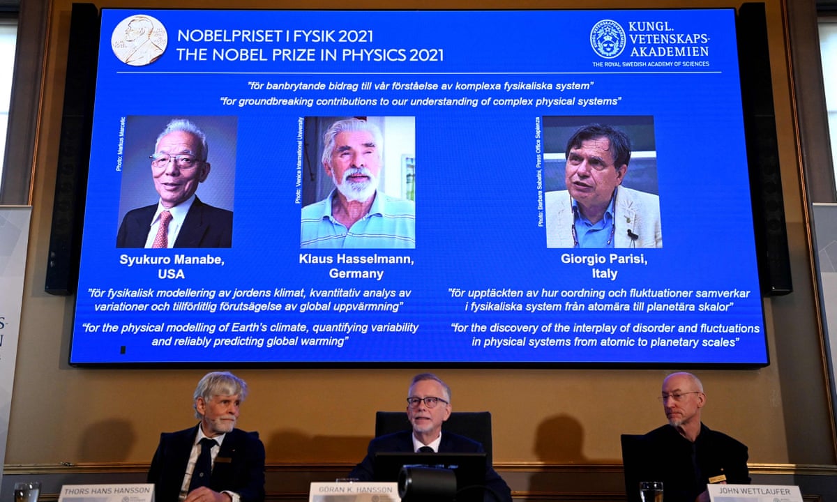Manabe and Hasselmann will share one half of the prize and Parisi takes the. Syukuro Manabe of the US and Japan Klaus Hasselmann of Germany and Giorgio Parisi of Italy on Tuesday won the Nobel Physics Prize for climate models and the understanding of physical systems the jury said. Syukuro Manabe Klaus Hasselmann and Giorgio Parisi were honored for their work which laid the foundation of our knowledge of the Earths climate and how humanity.